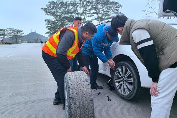 为过往车辆更换轮胎。北投能源集团供图