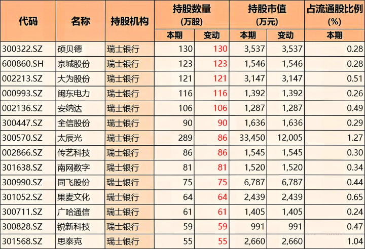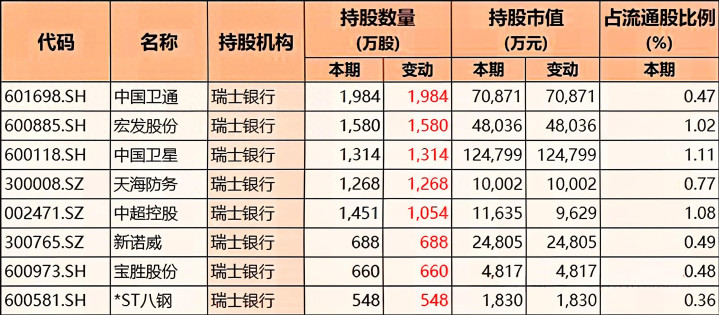 瑞士银行最新A股持仓名单终于浮出水面,此次外资的调仓看成十分有看头。不卖关子,平直上干货——瑞银一季度大举新进中国卫通1984万股,持仓市值遽然飙到7个亿,这在QFII的操盘历史上王人算大手笔。