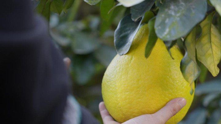 ▲梅州文旦由“论斤贱卖”升级为“按个杰作”。(李孟麟 摄)