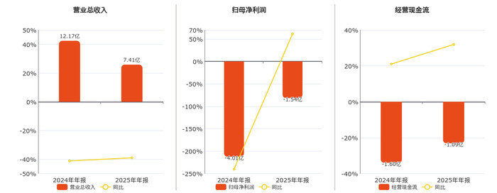 公司交易总收入为7.41亿元,在已显露的同行公司中排行第26,较客岁同陈诉期交易总收入减少4.76亿元,同比拟客岁同时下落39.08%。归母净利润为-1.54亿元,在已显露的同行公司中排行第28。指标动作现款净流入为-1.09亿元,在已显露的同行公司中排行第26。