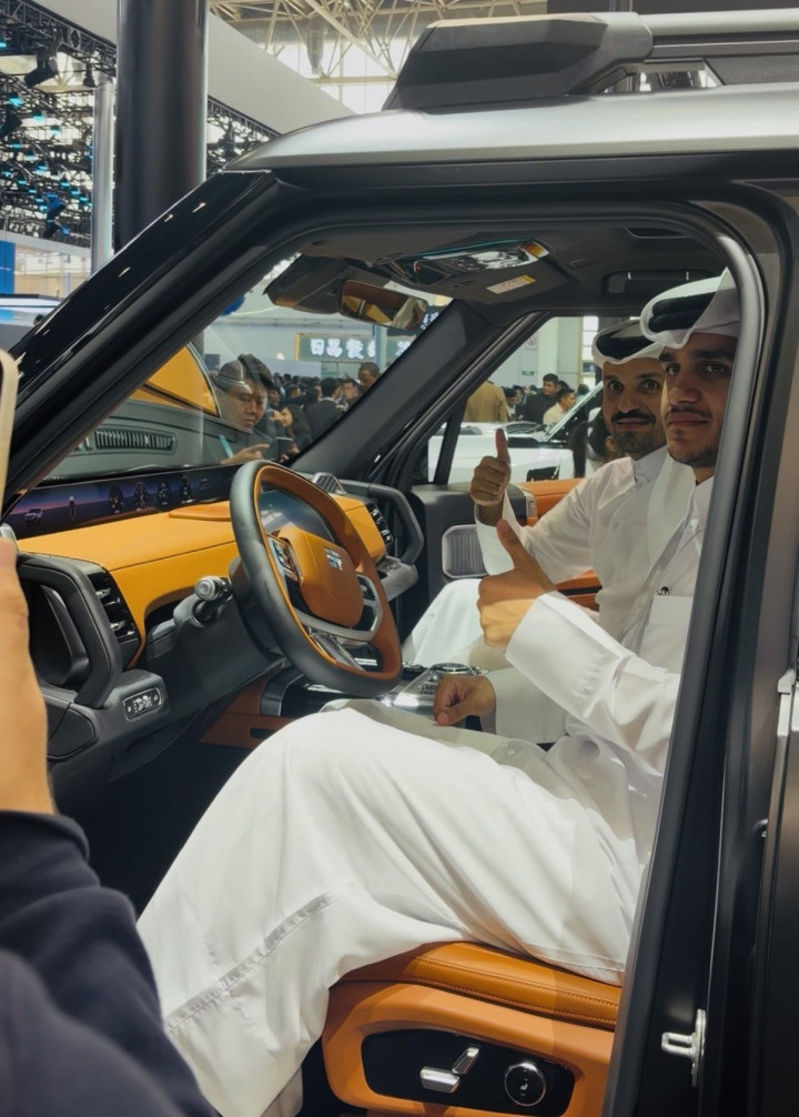 中东东说念主在捷途车里打卡眷顾。新京报贝壳财经记者林子 摄