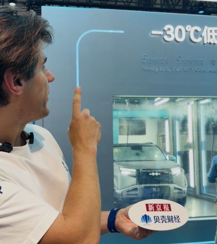 销售东说念主员向新京报贝壳财经记者先容,这个设施尤其受北欧东说念主良善。北欧新能源车占比相对较高,但冬季严寒,他们紧要念念知说念中国车在极寒温度下能否泛泛充电。