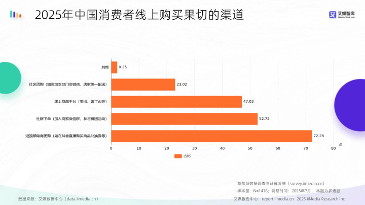 2025年中国花消者线上购买果切的渠谈