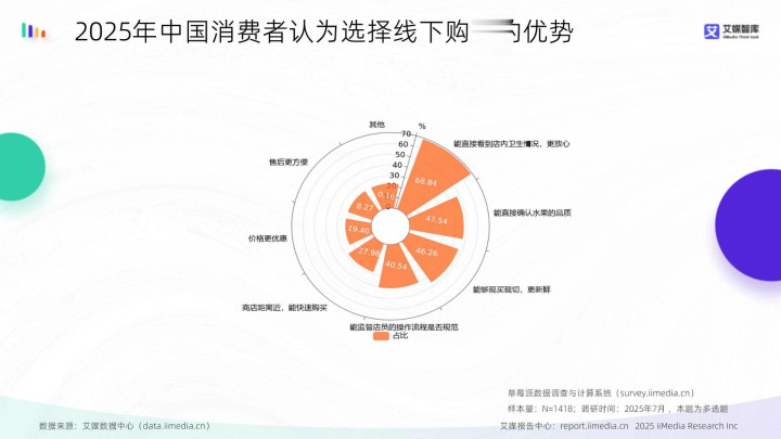 数据显现,2025年中国花消者以为线下购买的前三大上风为:能奏凯看到店内卫生情况更宽解(68.84%)、能奏凯阐明生果品性(47.54%)、概况现买现切更崭新(46.26%)。艾媒研究分析师以为,花消者选用线下购买的中枢运转是对“可视化信任”的需求,店内卫生情况是最要津身分,举座响应出花消者对线下场景中“即时可感知的安全与崭新”的高度详细。