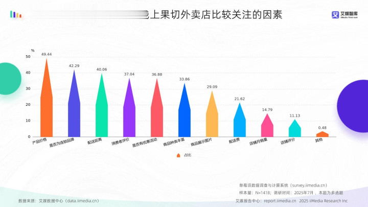 2025年中国花消者选用线上果切外卖店比拟矜恤的身分
