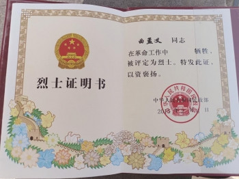 ▶曲孟义的义士证明书。